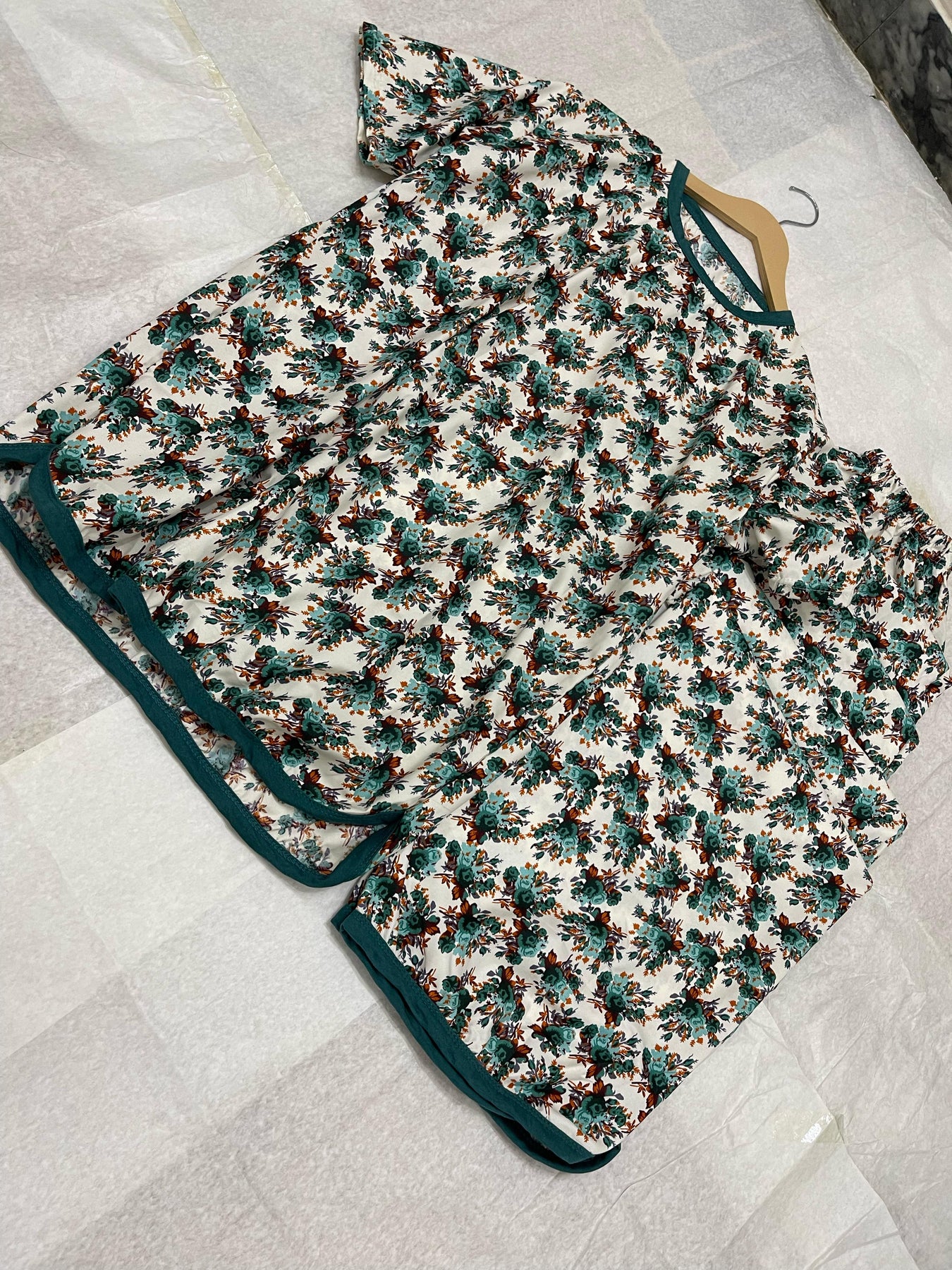 The soothing floral print on a light base gives a calm, refreshing look, while the cotton-polyester blend fabric keeps you cool in summer and cozy in winter. Whether you’re unwinding after a long day or enjoying a lazy morning, this set makes comfort feel luxurious—without the high price tag.