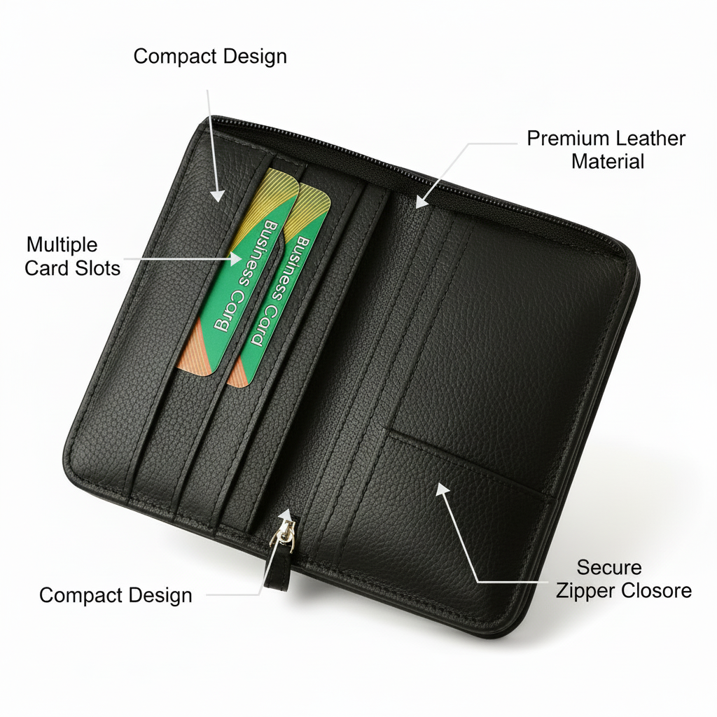 This wallet is perfect for office use, business meetings, travel, and daily life. With its zip-around design, your cash, cards, and important documents stay safe and well-organized at all times.