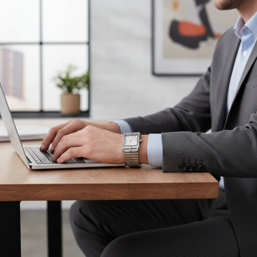 ⚪ Crisp White Dial: The clean, striking white dial ensures high readability and a fresh, professional look that pairs with any attire. (Keywords: White Dial Watch, Silver Chain Watch, Classic Man Watch, Minimalist Watch, Formal Watch)