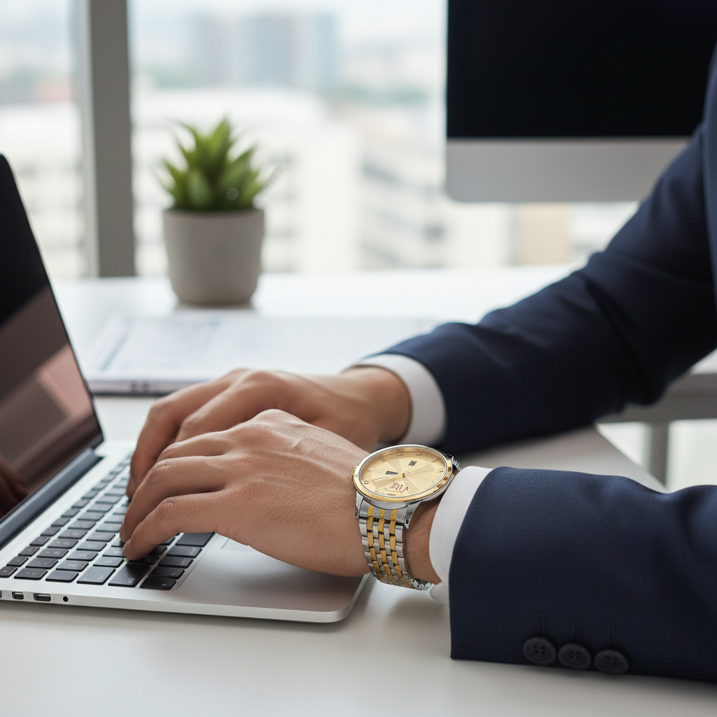 ๐ Bold Golden Base: The gleaming golden chain and casing provide an instant, high-luxury aesthetic, ensuring you command attention at any event. (Keywords: Golden Silver Watch, Two-Tone Watch, PrimeX Watch, Men's Luxury Watch, Executive Sport Watch)