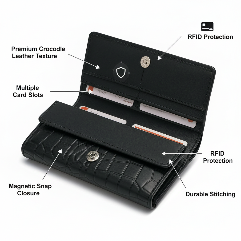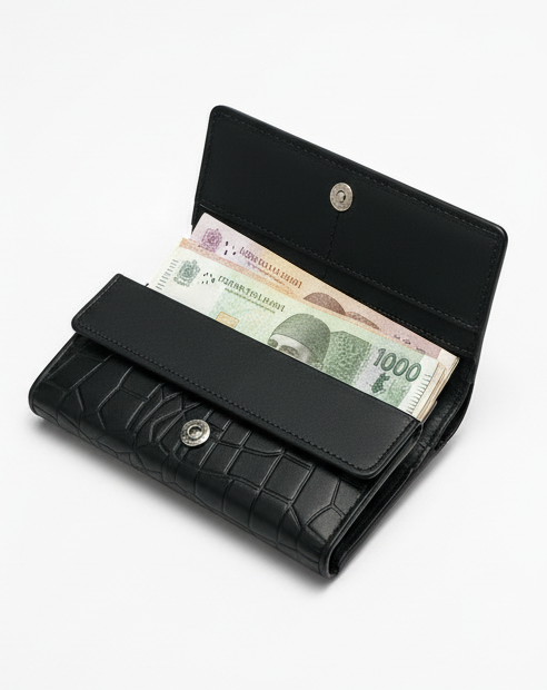 Designed with a secure button flap, elegant crocodile-texture finish, and smart compartments, this wallet keeps your cash, cards, and coins safe and neatly organized. Perfect for everyday use in Pakistan, whether you’re heading to work, shopping, or traveling.