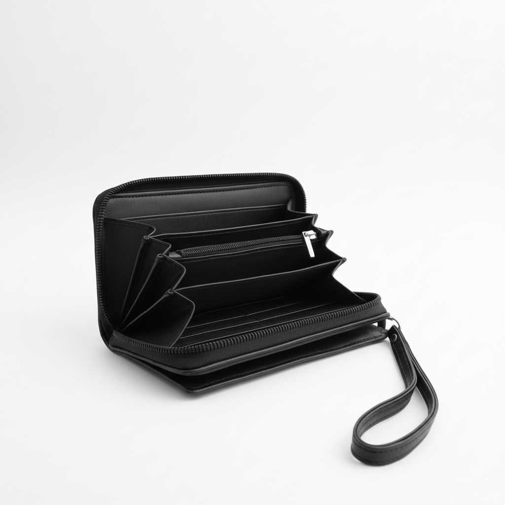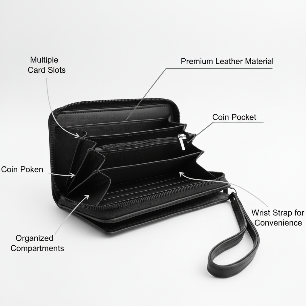 ✔ Spacious Multi-Compartment Design – Separate sections for cash, cards, coins, receipts & mobile