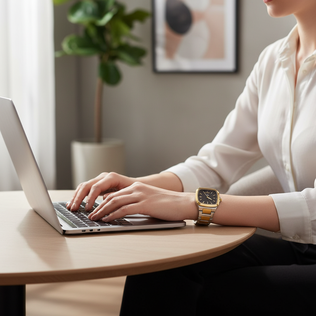 ⛓️ Ultimate Two-Tone Finish: The beautiful integration of golden and silver links in the chain and casing ensures this watch perfectly matches all your jewelry, eliminating daily styling guesswork.